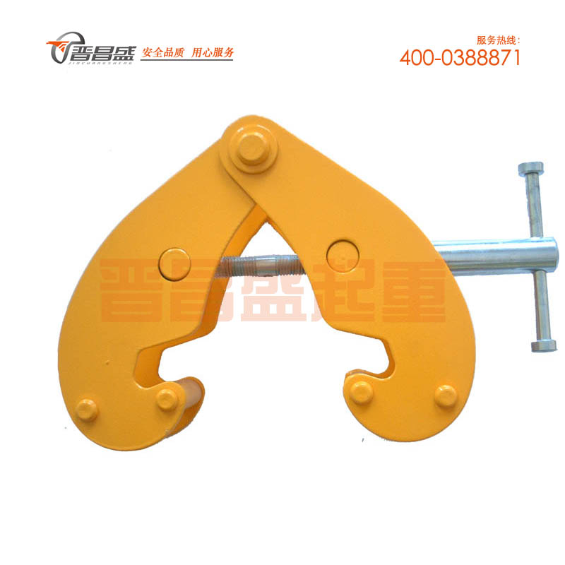 固定于螺紋鋼上支撐和起吊葫蘆設備,載荷范圍0-5噸; 采用低碳優(yōu)質合金鋼制造以一只為實驗額定載荷,試驗載葆為2倍最大工作載荷。 逆時針旋螺紋軸,松開鉗口,夾入工字鋼下緣,順時針旋螺紋軸,夾緊即可。