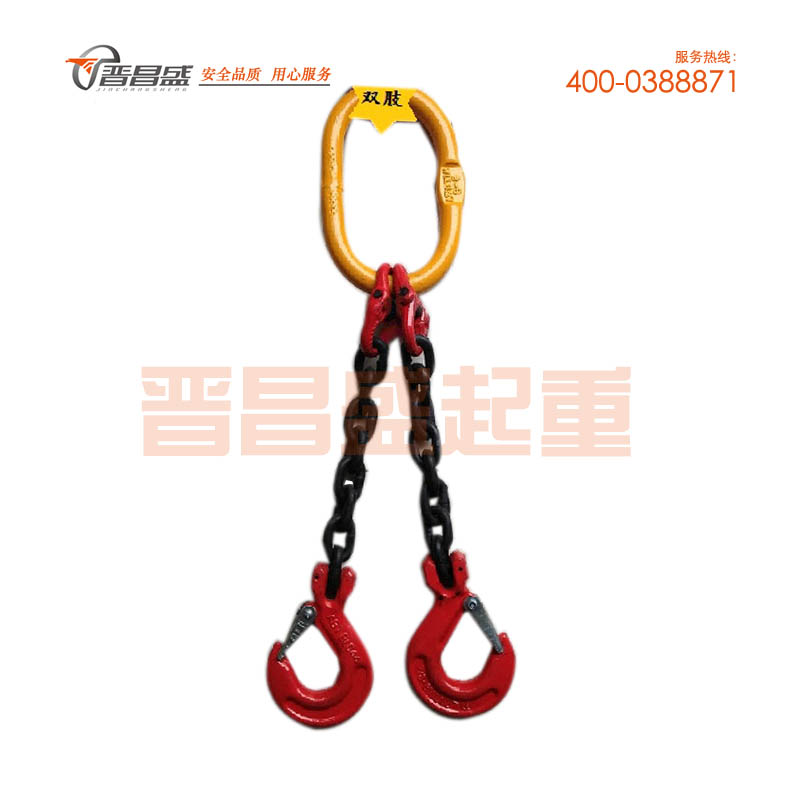 1、該索具可以作為單肢捆綁索具使用,當(dāng)單肢捆綁索具使用時(shí)只需將吊鉤鉤入鏈條,此時(shí)額定載荷將降低20%。