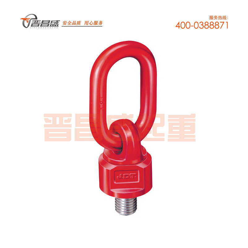 一般結(jié)構(gòu)形式的吊環(huán)螺栓,承載能力為0.5-30t,簡單而又堅固的結(jié)構(gòu),在各種加載方式下,都有4倍的安全系數(shù)來保證,非常平,非常好,可以360°旋轉(zhuǎn),吊環(huán)可以鎖住,吊環(huán)可以90°傾斜,安裝了軸承,承載時可以旋轉(zhuǎn)。