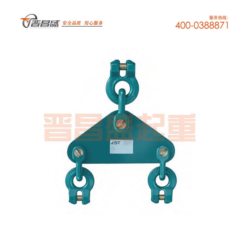 德國JDT100級卸扣式吊板產(chǎn)品介紹: 下面提到的額定載荷是對使用雙肢鏈有效的,必須是對稱的分布。雙肢鏈條一端安裝到吊板,另一端安裝吊鉤。