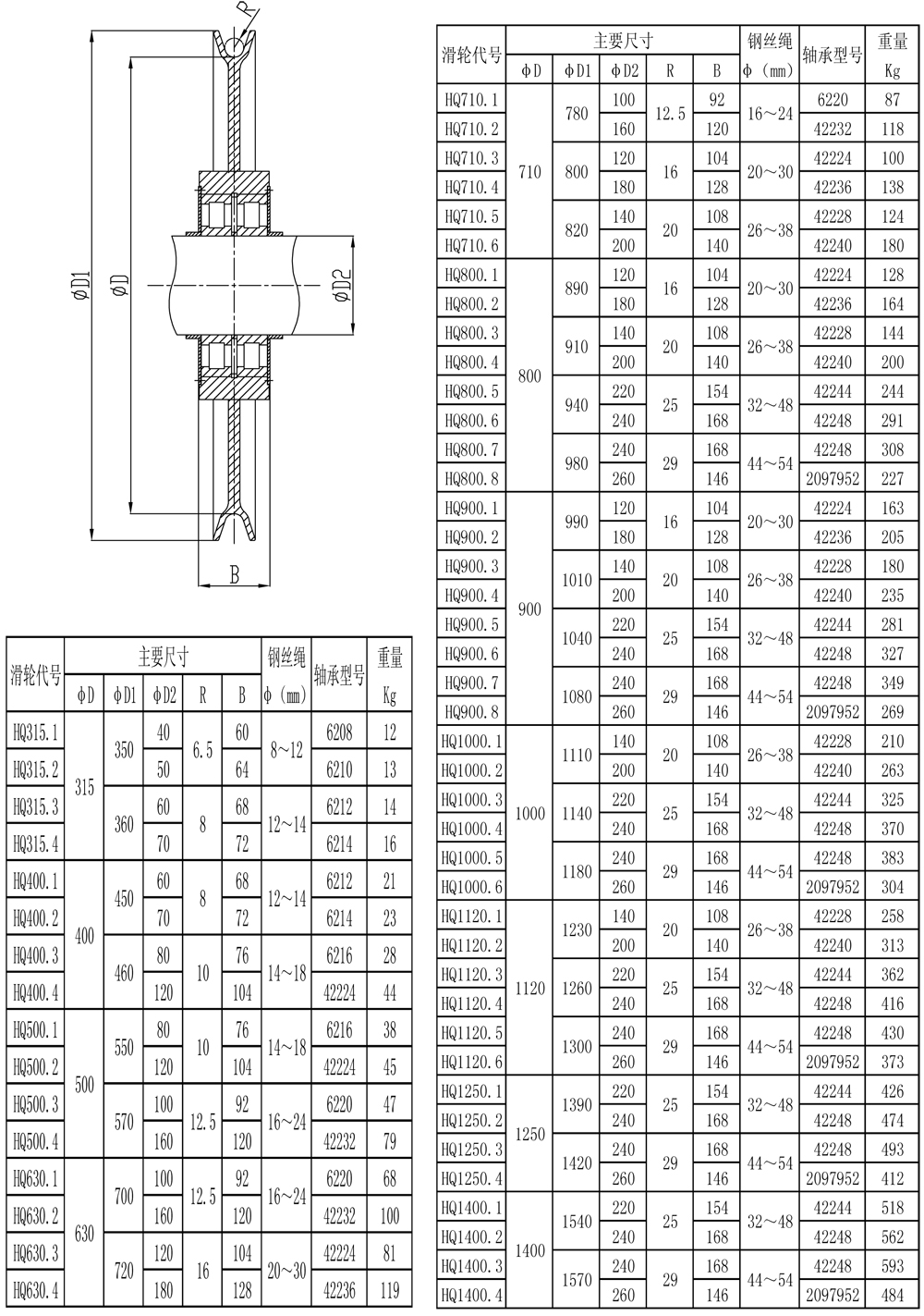 六、精度高:徑向跳動為1/1000D(D-滑輪直徑),超過西德標準DIN15063-77規(guī)定的5/1000D, 側(cè)向跳動為2/1000D超過日本標準3/1000D。