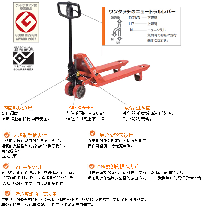 OPK獨創(chuàng)的油泵結構,單觸式的空擋杠桿,負荷時也可輕松操作行駛。